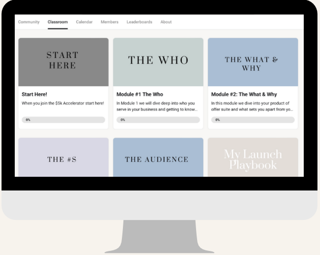 In this program, I’ve taken all of my experience and funneled it into 5 simple steps to help you reach consistent revenue months and build a better business that lasts. I’ve made it as easy as humanly possible AND I will guide you through the whole process.
